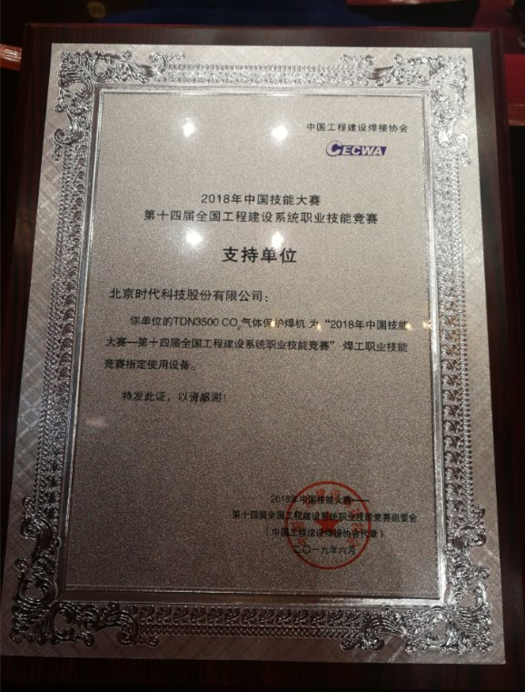 2019年5月29日-6月2日,第十四屆全國工程建設系統職業(yè)技能競賽在天下第一雄關(guān)-嘉峪關(guān)成功舉辦,本屆競賽由中國就業(yè)培訓技術(shù)指導中心、中國工程建設焊接協(xié)會(huì )主辦,甘肅鋼鐵職業(yè)技術(shù)學(xué)院、甘肅冶金技術(shù)學(xué)院承辦,北京時(shí)代科技股份有限公司是本屆賽事的支持單位。中國工程建設焊接協(xié)會(huì )副會(huì )長(cháng)、北京時(shí)代科技股份有限公司總裁鮑云杰參加開(kāi)幕式。來(lái)自全國化建、電建、石化、建工、船舶工業(yè)、冶金、石油、水利水電、院校等22省市19個(gè)行業(yè)80個(gè)企業(yè)101個(gè)代表隊282名選手將參加本次競賽。北京時(shí)代科技股份有限公司生產(chǎn)的全數字氣保焊機TDN3500做為此次競賽的指定用機。