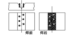 此種焊接方法主要用于工作應力較大,工件相對較厚的焊縫,如大型機器的底座等工件。鉚釘可用碳鋼承擔,焊鉚釘時(shí)可用J507焊條焊接,主焊縫仍舊用鎳基182焊條。焊接時(shí)先將坡口內焊滿(mǎn),最后焊鉚釘,使鉚釘和坡口內焊縫形成一個(gè)整體焊縫。
