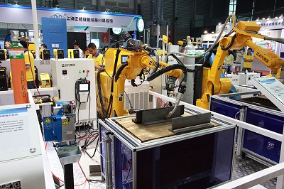 時(shí)代TIME R6-1400弧焊機器人配置時(shí)代全數字化TD系列脈沖氣保焊機,在焊接不銹鋼時(shí),可以完全取代人工作業(yè),并能夠取得非常完美的焊縫成型和焊接質(zhì)量。該套焊接系統在焊接中厚板碳鋼的時(shí)候,配置機器人起始點(diǎn)自動(dòng)尋位功能,使時(shí)代機器人可以在工件焊接前自動(dòng)糾正工件放置的偏差。時(shí)代機器人高效精準的焊接過(guò)程令現場(chǎng)觀(guān)眾嘆服。